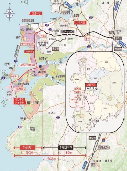 새만금항 인입철도는 새만금 개발로 인해 발생하는 여객, 화물에 대한 철도서비스를 제공하고, 새만금과 전북권 주요 도시를 철도로 연결하여 새만금 지역의 발전을 뒷받침할 핵심적인 철도 인프라 사업이다.