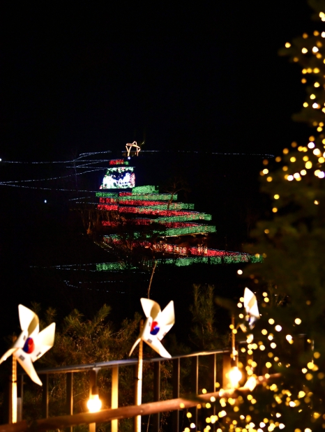 이날 행사는 애기봉의 역사이자 상징이었던 클래식한 트리의 정석을 모티브로 한 ‘애기봉 희망의 트리’ 제막으로 막을 열었다. 이어 주제공원 생태탐방로에서 길게 뻗은 산책로에 빛을 쏘아 만든 ‘트리 로드’가 점등되자, 빛 속을 걷는 듯한 몽환적인 분위기가 연출됐다.