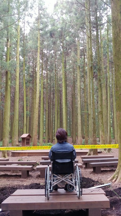 | ▲한 장애인이 사려나숲을 바라보고 있다. (사진=서귀포시 제공) |