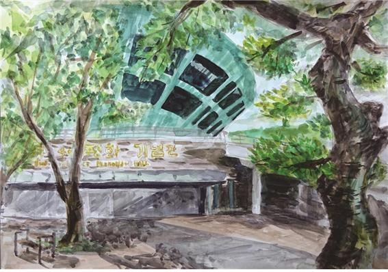 | ▲ 제3회 학생4·3문예대회에서 그림부문 대상을 받은 애월중학교 3학년 김예주 학생의 '4·3평화공원' 작품.<사진제공=제주도청> |