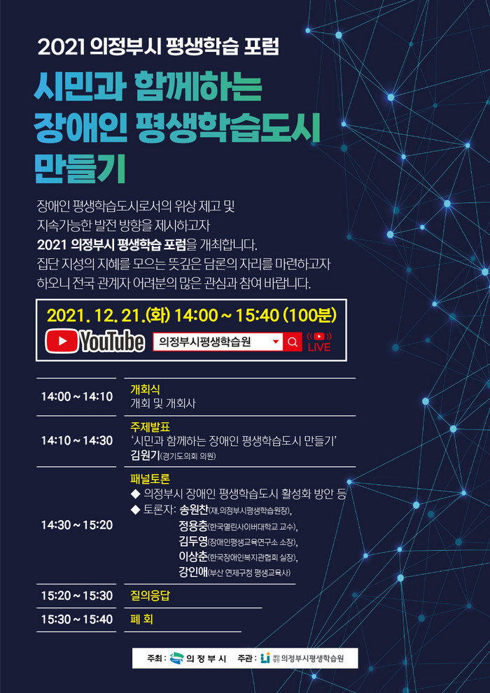의정부시평생학습원 공식 유튜브 채널 통해 중계 예정