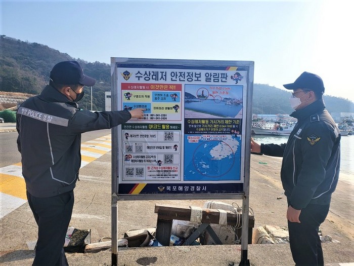 목포해경은 봄 행락철을 대비해 관내 수상레저 활동 금지구역 10개소와 사고 위험도를 감안한 집중 관리구역 10개소를 방문, 사고 위험요소 사전 발굴 및 수상레저 안전정보 알림판의 관리상태 등을 점검한다.
