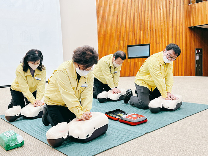 교육은 심정지 의심 환자를 발견했을 때 4분의 골든타임 동안 의식 확인, 구조 요청, 심장 압박을 하는 심폐소생술의 초기 대응 중요성을 교육한 후 실습용 마네킹 및 자동심장충격기(AED) 등 교육 장비를 활용해 심폐소생술을 직접 체험하는 방식으로 진행됐다.