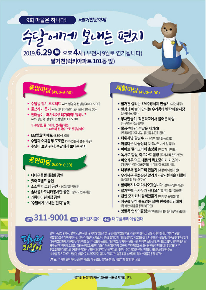 | ▲ 팔거천문화제 '수달에게 보내는 편지' 포스터. (자료=팔거천지킴이 제공) |