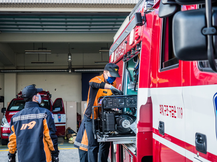 | ▲ 대구소방 119 소방공무원들이 소방장비 점검을 실시하고 있다.(사진=대구소방 제공) |