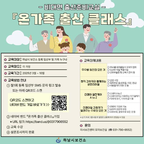 [세계로컬타임즈] 하남시는 임산부와 가족이 함께 출산과 육아를 준비할 수 있도록, 오는 10월까지 비대면 출산준비교실 ‘온가족 출산 클래스’를 운영한다.