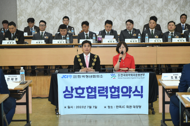 [세계로컬타임즈 이종화 기자] 한국마약퇴치운동본부와 한국청년회의소는 7일 한국청년회의소 본사에서 대한민국의 변화를 만들어 내기 위해 협력사업을 개발하고 공동으로 추진하기 위한 업무협약을 체결했다.