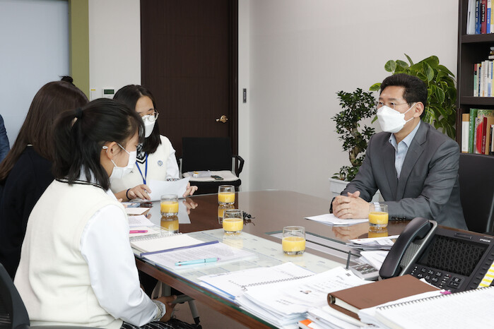 이 시장은 학생기자들의 질문에 하나하나 정성껏 답했다.