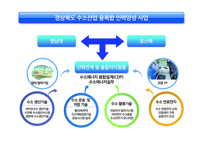 경북도는 올해부터 2024년 까지 총 사업비 43억 원을 투입해 영남대와 포스텍에서 116명 이상의 수소융복합 전문 인력을 배출할 계획이다. 아울러 이를 통해 수소산업 인력 수급의 안정화를 도모함은 물론, 경북을 국내 수소 신산업 인력 공급의 거점지역으로 육성하겠다는 계획이다.