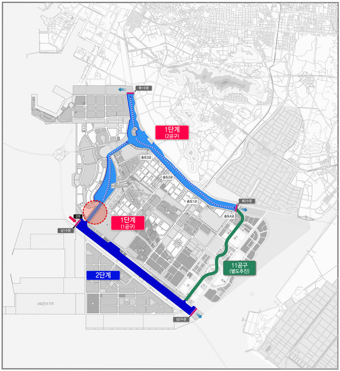 송도국제도시 워터프런트 조성사업은 오는 2027년까지 사업비 6,215억원을 투입해 교량·수문·인공해변·수상터미널·마리나 시설·해양스포츠 체험장 등을 신설한다.