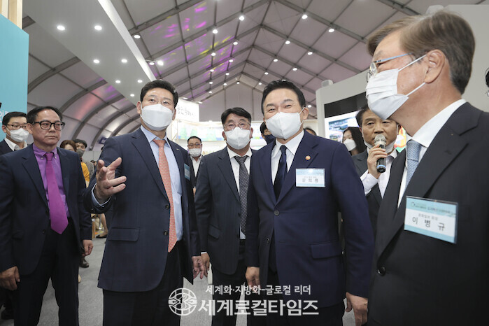 개막식 직후 이상일 용인특례시장과 원희룡 국토교통부장관은 함께 용인특례시 전시관을 비롯해 SK하이닉스, KCC, ㈜레젠 등의 전시관을 둘러봤다.