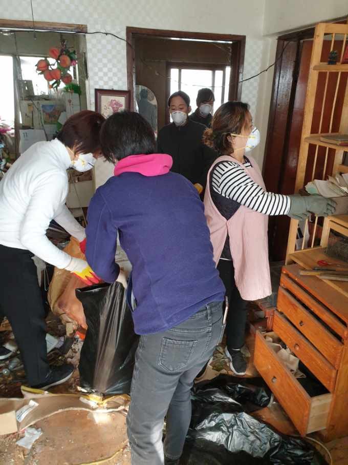 | ▲ 서인천라이온스클럽 자원봉사자들이 홀몸노인 보금자리 공사를 하고있다. (사진=미추홀구 제공) |