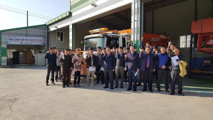 | ▲ 관계자들이 제설교육을 받고 있다.(사진=대구 동구청 제공) |