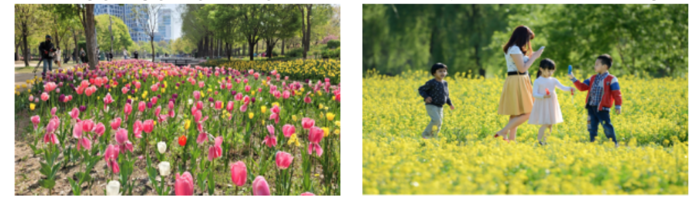 | ▲ 서웊숲 튤립(사진 왼쪽)과 서초구 반포 서래섬 유채꽃 (사진=서울시) |