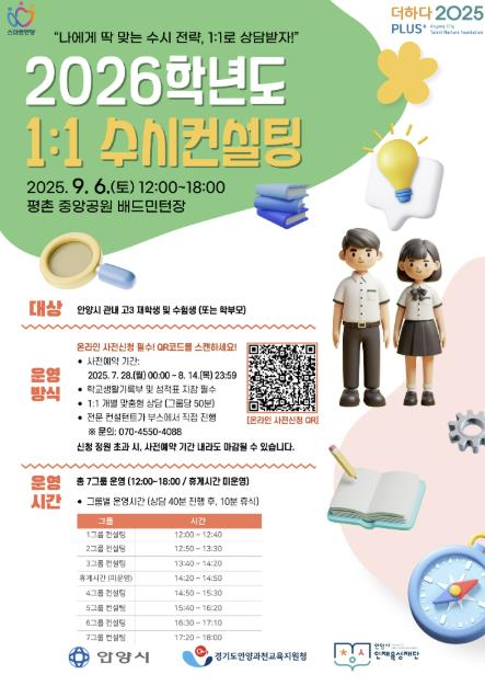본 행사는 제10회 안양시 진로페스티벌의 일환으로 마련됐으며, 진학을 앞둔 고등학생과 학부모들에게 실질적인 입시 전략을 제시하는 상담 프로그램이다.
