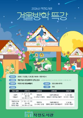 프로그램 신청은 각 1월 12일, 1월 26일 오전 10시부터 계양구립도서관 누리집에서 선착순으로 진행되며, 자세한 사항은 작전도서관으로 문의하면 된다.