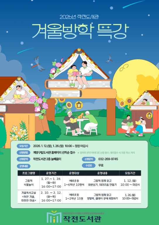 프로그램 신청은 각 1월 12일 1월 26일 오전 10시부터 계양구립도서관 누리집에서 선착순으로 진행되며, 자세한 사항은 작전도서관으로 문의하면 된다.