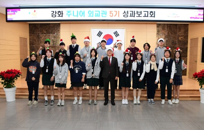 성과보고회에는 강화 주니어 외교관 5기 학생 20명과 30여 명의 학부모, 관계자들이 참석한 가운데 활동 증명서 및 우수 외교관 상장 수여, 전체 활동 성과 영상 공유, 학생 활동 소감 및 그룹 퍼포먼스 등으로 진행됐다.