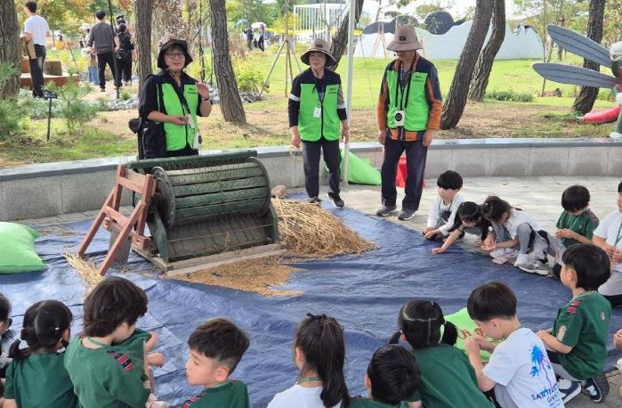 이번 체험은 농업생태원에서 직접 재배한 벼를 활용해, 관람객들이 호롱기와 홀테 등 전통 농기구를 이용한 옛날 방식의 벼 탈곡을 직접 체험할 수 있도록 마련됐다. 도시민들이 평소 접하기 어려운 전통 농사문화를 몸소 경험하며 농업의 소중함과 수확의 기쁨을 느낄 수 있는 시간이 됐다.