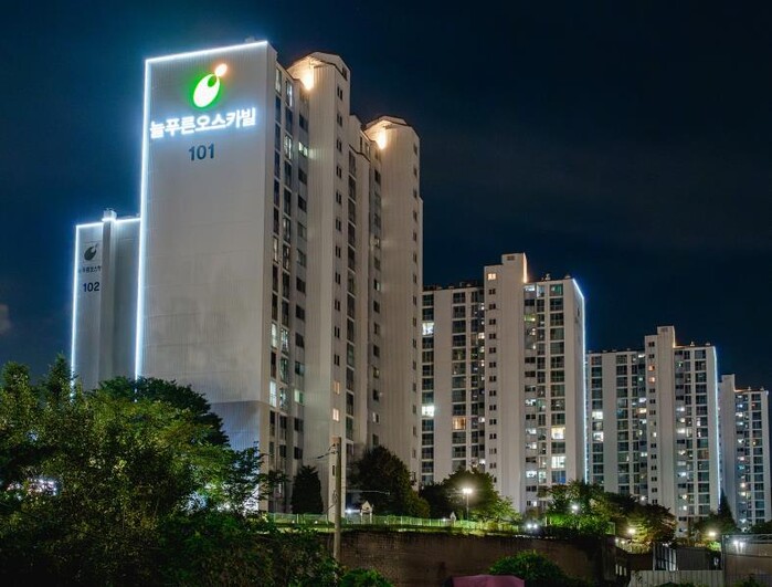 [세계로컬타임즈] 오산시 관내 아파트(공동주택) 단지들이 오색찬란한 빛으로 물들고 있다.