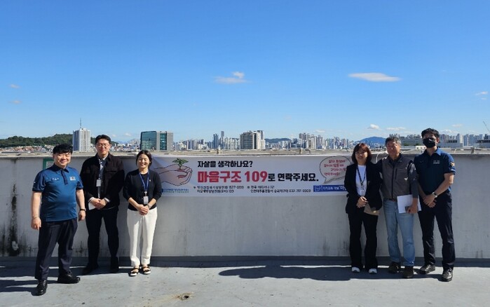 이에 센터는 미추홀경찰서 범죄예방대응과(생활질서계), 숭의지구대와 협력해 사업을 추진했으며, 자살 시도 위험이 큰 지역 내 고층 건물 관계자들을 대상으로 건물 옥상 출입문 관리의 중요성 및 자살 위험성에 대한 인식 개선을 안내했다.