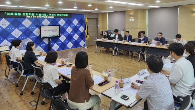 ‘의료·돌봄 통합지원’은 의료와 돌봄 서비스를 연계해 시민이 지역에서 지속적으로 지원받을 수 있도록 돕는 제도로, 간담회에는 보건복지부 관계자, 국회 정책 전문가 외에 부천시 공무원, 민간 수행기관, 지역 의료기관 관계자 등이 참석했다.