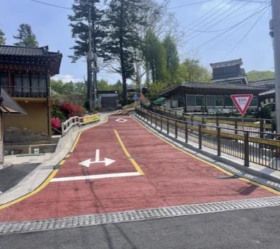 특히, 해당 구간은 보·차도 구분이 없고 차량 교행이 어려운 구조로 통행하는 차량과 보행자의 안전 확보에 지속적인 우려가 제기돼 왔으며 이번 확포장 공사를 통해 인도 및 안전난간이 새롭게 설치됨으로써 보행하는 학생들의 안전이 크게 향상될 것으로 기대된다.