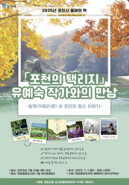 이번 강연에서는 포천의 명소와 문화유적 소개는 물론, 일상을 기록하는 법, 공모전을 통해 책을 출간하는 방법, 사진 촬영 요령 등 이 분야에 관심 있는 분들에게 실질적인 도움이 될 작가의 방법을 공유할 예정이다.