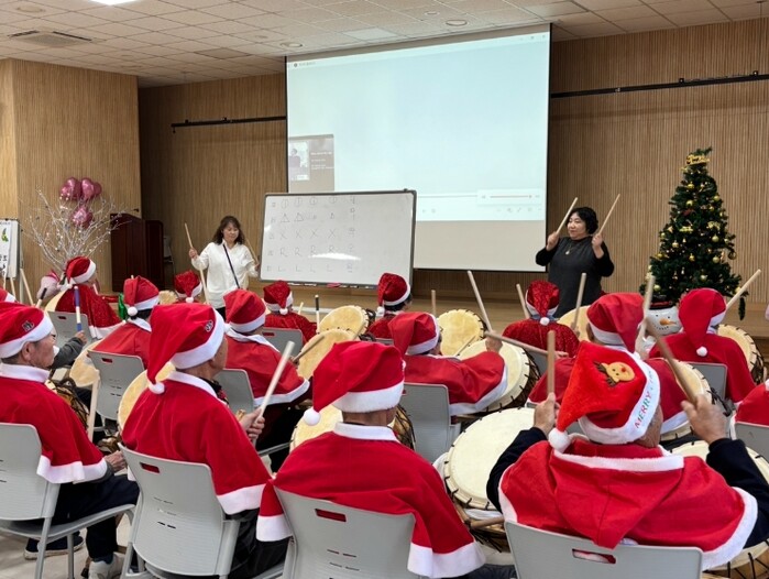 또한 직원들과 함께하는 ▲어르신들이 한 해 동안 만들어오신 ‘작품전’ 전시 ▲쉼터에서 즐거운 시간이 담긴 ‘활동 영상 감상’ ▲현실 인식 운동 및 율동 ▲음악 핸드벨 및 난타 ▲산타 선물 전달식 ▲단체 기념 촬영 등 다양한 내용으로 참여자들께 큰 호응과 감동을 줬다.