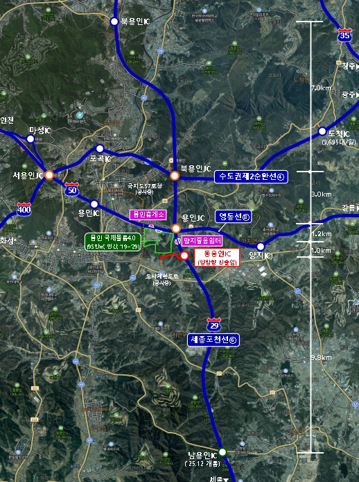 동용인IC 신설은 용인 국제물류4.0 유통단지의 고속도로 접근성 향상과 경기도 용인특례시 주민들의 이동 편의를 위하여 추진되는 사업으로, 총 사업비 약 936억원, 일평균 교통량은 27,471대로, 용인시 처인구 양지면 일원에 설치되어 향후 물류단지 진입도로 및 국도 42호선과 연결되며, 실시설계(1년)와 건설공사(3년)를 거쳐 2029년 개통될 예정이다. 동용인IC가 개통되면, 용인 국제물류4.0 유통단지와 서울 간 이동거리는 최대 2km, 이동시간은 10분 정도 단축이 예상된다.