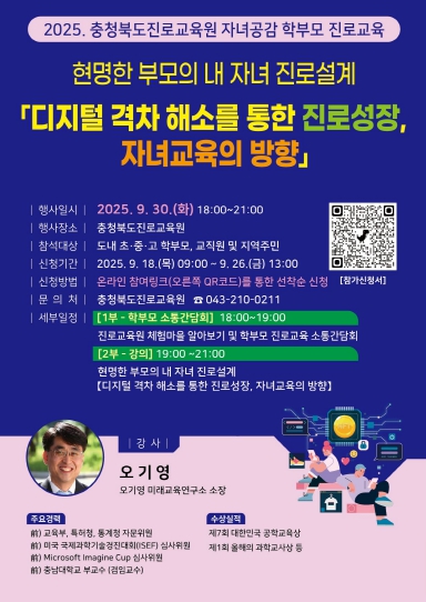 이어, 2부에서는 오기영 미래교육연구소 소장이 '디지털 격차 해소를 통한 진로성장과 자녀교육의 방향'을 주제로 특강을 펼쳐, 미래사회에서 학부모가 나아가야 할 방향을 함께 모색한다.