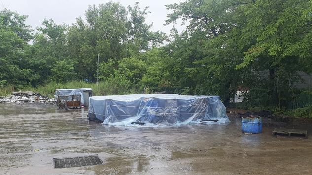 이어, 집중호우가 잦아든 7월 말 폐유 드럼 등 오염물질들을 강화비닐로 다시 감싼 뒤 공장 내부로 이동시켜 향후 유출을 원천 차단했다.