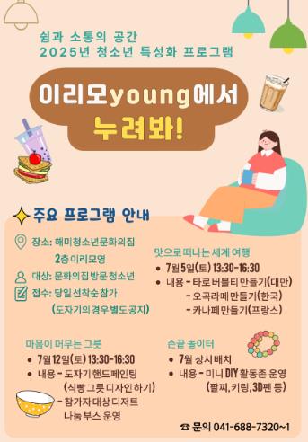 '이리모young에서 누려봐!'는 7월 이리모영의 달을 맞아 청소년의‘쉼’과‘소통’을 테마로 총2회에 걸쳐 운영된다.