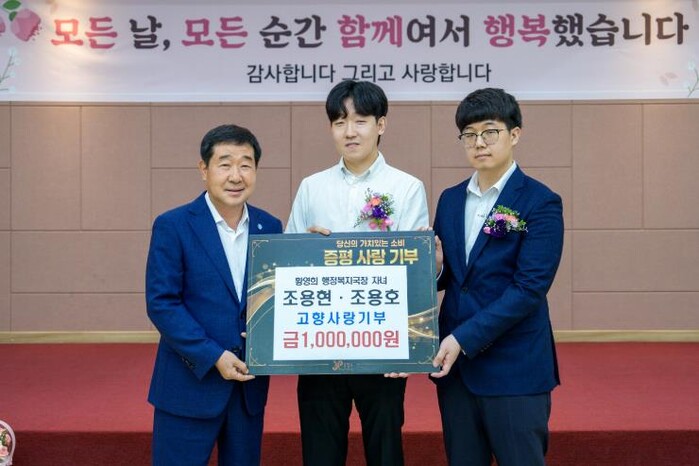 황 국장의 두 아들인 조용현 씨와 조용호 씨가 어머니의 오랜 공직생활을 기념하며, 증평군에 고향사랑기부금 100만 원을 기탁한 것이다.