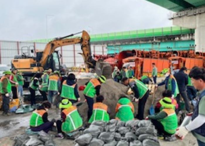 세계로컬타임즈 - 김포시자율방재단, 호우 등 침수대비 모래마대 4,000개 제작
