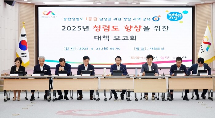 이날 시청 대회의실에서 열린 보고회에는 이완섭 서산시장, 각 부서장 등 50여 명이 참석한 가운데, 지난해 청렴도 평가 결과, 부서별 청렴도 개선 방안 등을 공유했다.