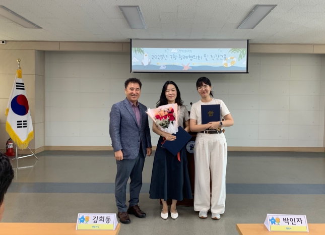 오지윤 주무관은 교육공무직급여 담당자로서 정확하고 공정한 업무처리를 통해 청렴의식 강화에 노력했고, 안옥순 조리실무사는 소통과 공감을 통한 신뢰받는 급식 문화 형성에 기여했으며, 한희 교무실무사는 다양한 업무 지원및 친절한 민원응대로 민원행정서비스 만족도 향상에 기여했다.