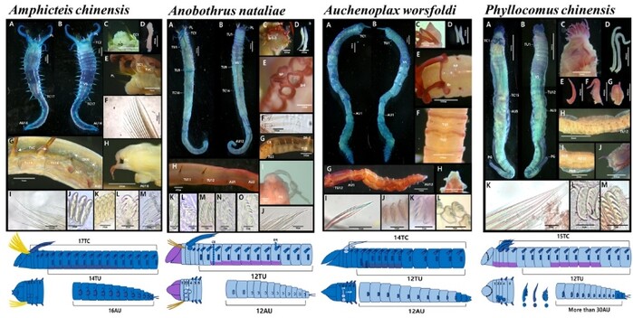 이번에 새롭게 보고된 종은 ▲Anobothrus nataliae ▲Amphicteis chinensis ▲Auchenoplax worsfoldi ▲Phyllocomus chinensis 등 4종이다.