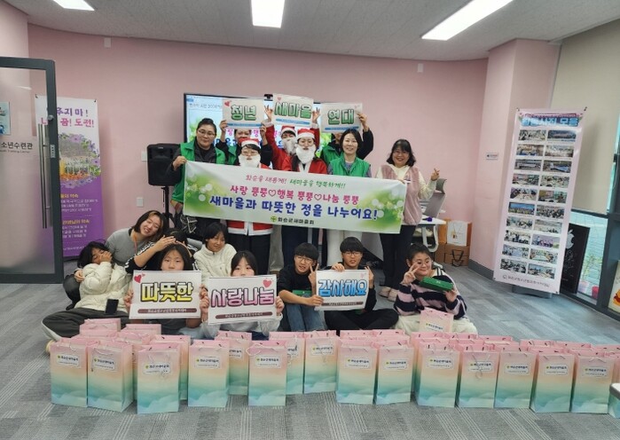 이번 후원은 화순군새마을회(회장 주창범)와 화순군 청년새마을연대(회장 김미란)가 지역사회와 청소년이 함께하는 연말 나눔 실천의 일환으로 마련했다. 회원들은 직접 산타 복장을 하고 청소년방과후아카데미를 방문해 준비한 후원 물품을 전달하며 따뜻한 정을 나눴다.