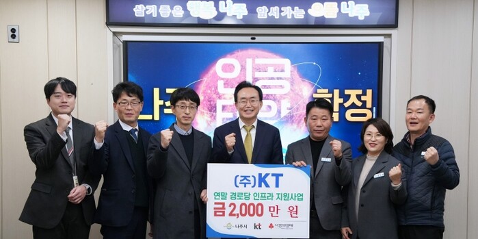 나주시(시장 윤병태)는 ㈜KT(대표이사 김영섭)로부터 노후 취약 경로당 난방 인프라 지원을 위한 성금 2천만 원을 기탁받았다고 22일 밝혔다.