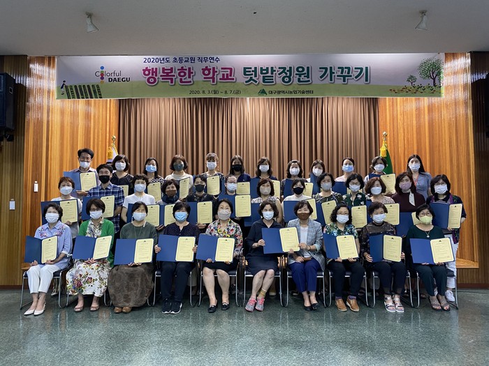 | ▲ '행복한 학교 텃밭·정원 가꾸기' 직무연수를 마치고 수료식을 하고 있다.(사진=대구시농업기술센터 제공) |