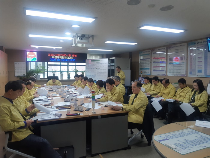 | ▲ 중구 관계자들이 코로나-19 관련 비상대책회의를 하고 있다. (사진=인천 중구 제공) |