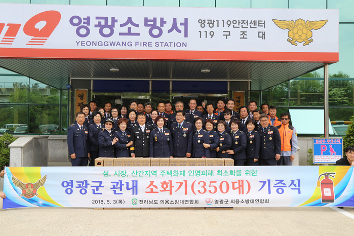 이날 기증된 소화기는 의용소방대원들이 정성껏 모금한 기금으로 구입한 것으로 영광터미널시장 상가의 소방안전을 위해 추진됐다.