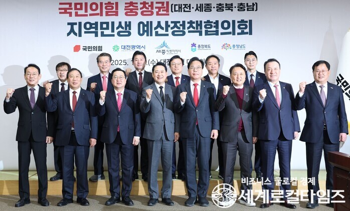이날 예산정책협의회는 국민의힘 장동혁 당대표, 송언석 원내대표, 김도읍 정책위의장, 박형수 예결위 간사 등 당 지도부와 이은권 대전시당위원장을 비롯한 4개 시.도당 위원장이 참석했으며, 이장우 대전시장, 최민호 세종시장, 김영환 충북도지사와 전형식 충남도 정무부지사가 대신 자리했다.