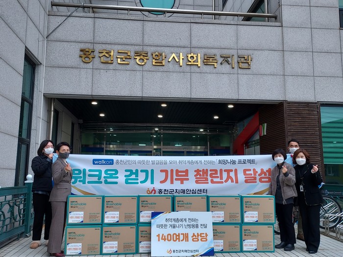 | ▲'워크온' 걷기 기부 챌린지 난방용품 전달 기념 사진 (사진=홍천군) |