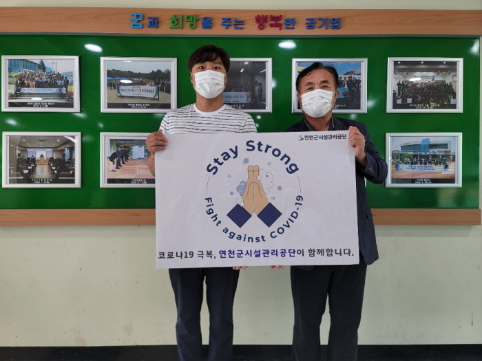 | ▲ ‘견뎌내자(Stay Strong)’ 팻말을 든 사진을 SNS에 게재하는 공익 캠페인을 진행하고 있다. (사진=연천시설관리공단 제공) |
