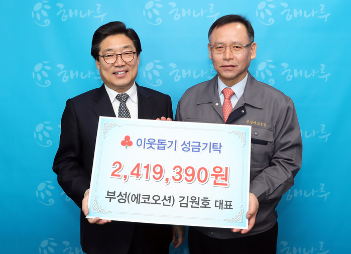 [세계로컬신문 김정태 기자] 40여 년의 공직생활을 마무리하고 일반 기업체에서 인생의 2모작을 시작한 김원호 부성에코오션 대표(전 당진3동장)가 회사 입사 후 받은 첫 월급 전액(241만9390원)을 어려운 이웃을 돕기 위한 성금으로 기탁해 훈훈한 감동을 주고 있다.