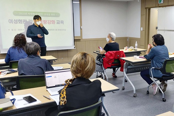 | ▲ 여성회관 프로그램 강사들을 대상으로 역량강화 교육을 진행중이다. (사진=인천동구 제공) |