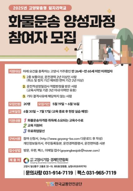 모집 대상은 만26세~65세 미만 고양시 거주 구직자이며, 서류 및 면접 심사를 통해 최종 20명을 선발할 예정이다.