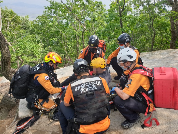 발견 당시 요구조자는 실족으로 인해 왼쪽 발목에 심한 통증을 호소해 거동이 불가능한 상태였다. 이에 소방대원은 응급처치 후 소방헬기를 통해 요구조자를 인천의 한 대학병원으로 이송했다.